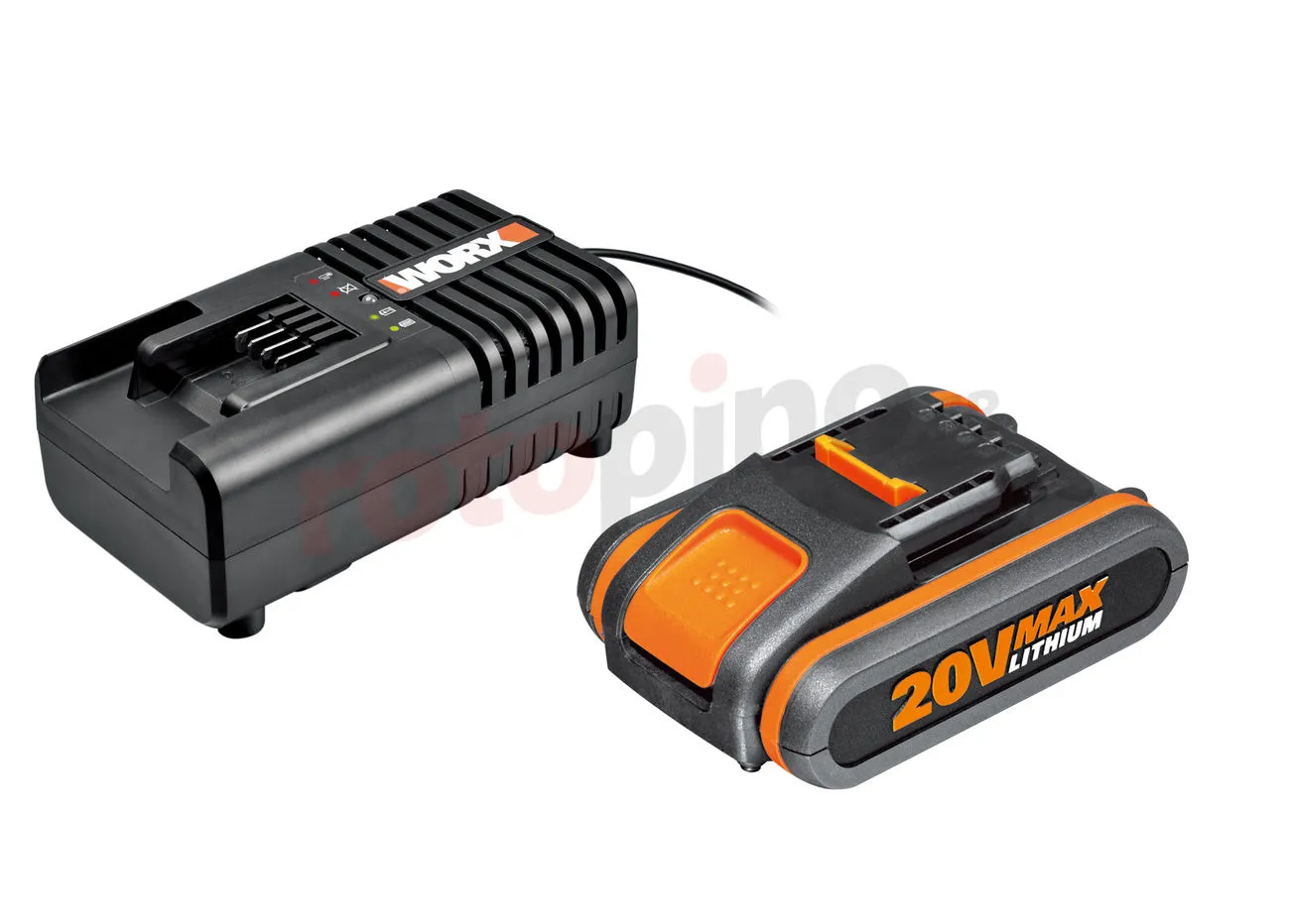- Le chargeur et la batterie sont un ensemble d’alimentation compatible avec tous les appareils sans fil Worx 20V Power Share.