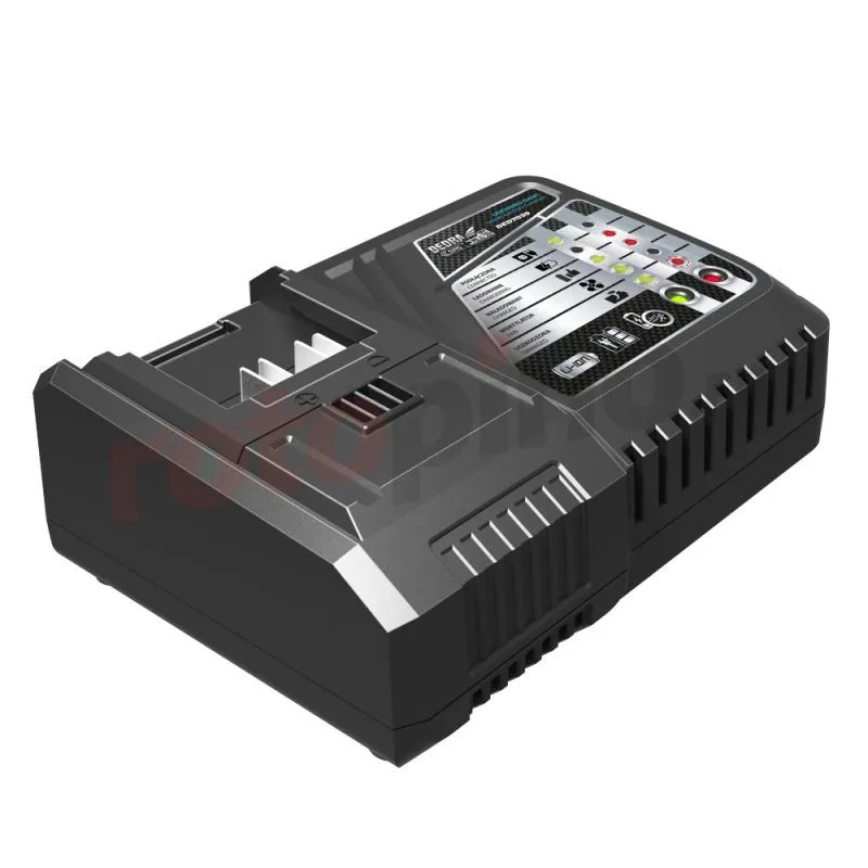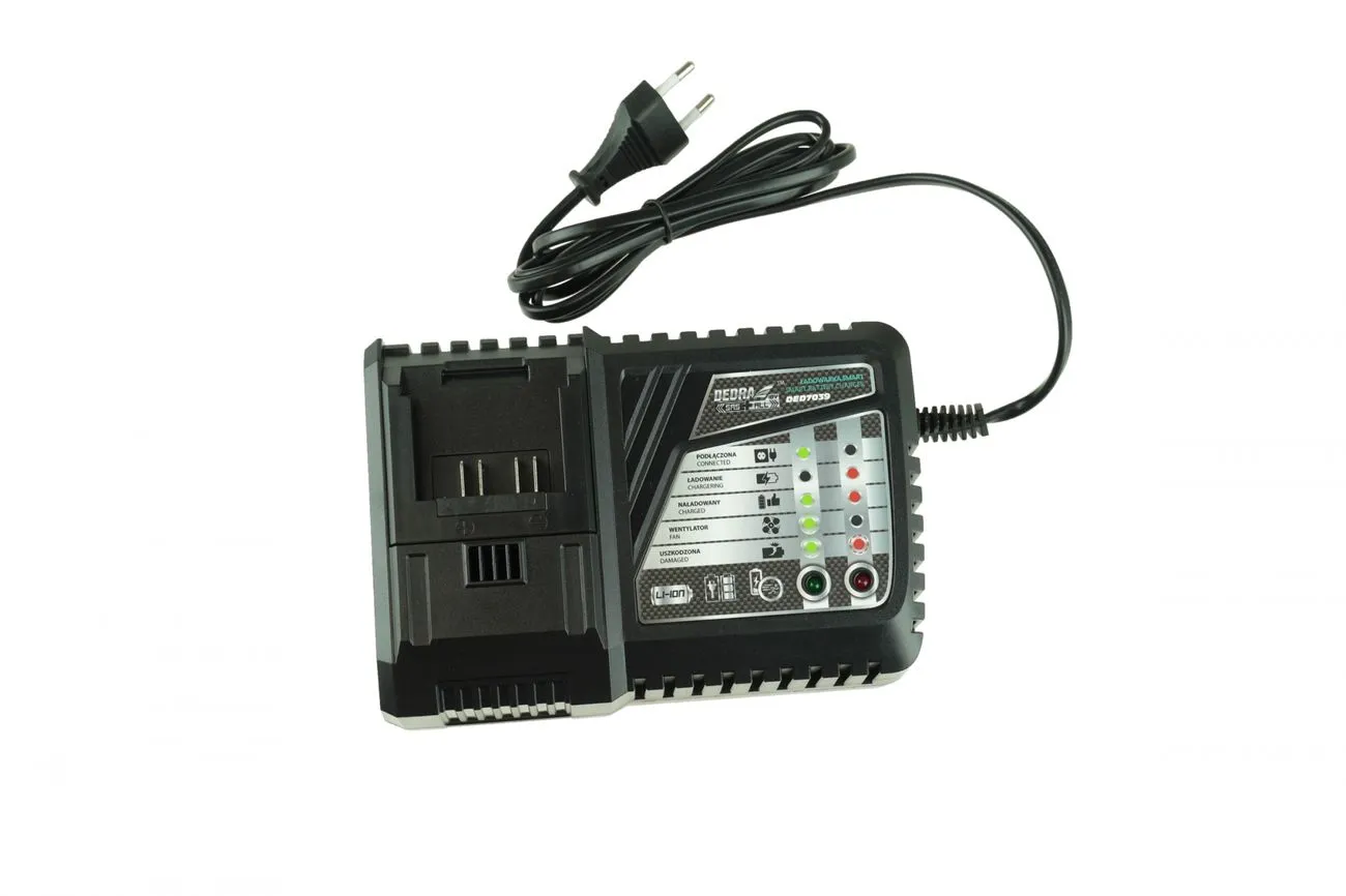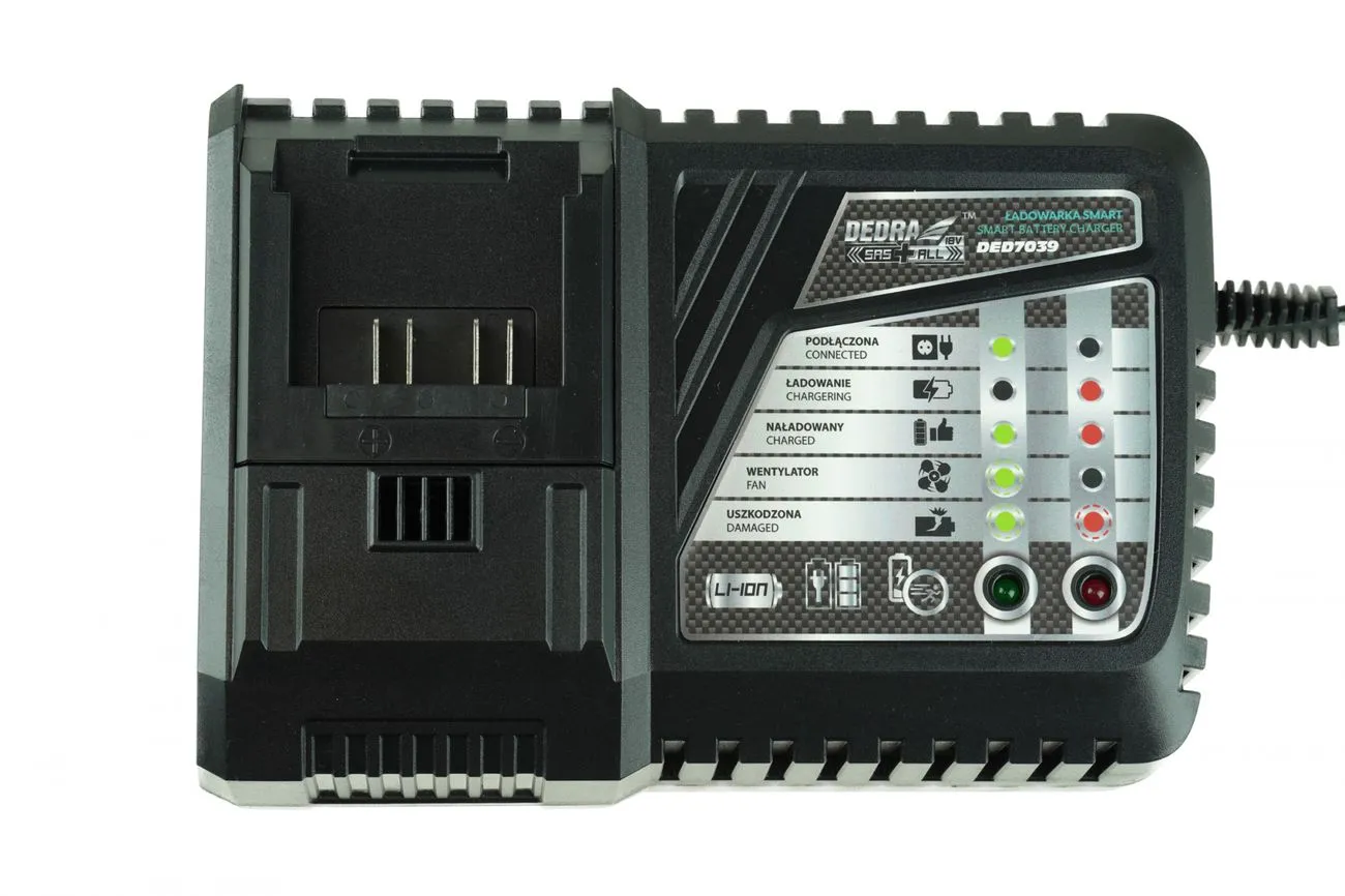 Le chargeur Smart DED7039 Dedra est conçu pour charger les batteries lithium-ion 18V SAS + ALL. L’appareil dispose d’un système de refroidissement et d’un indicateur LED informant de l’état de charge de la batterie. Grâce au montage coulissant, la connexion de la batterie au chargeur est simple et rapide. L’appareil permet de charger la batterie DED7032 en 30 minutes environ et la batterie DED7034 en une heure environ.