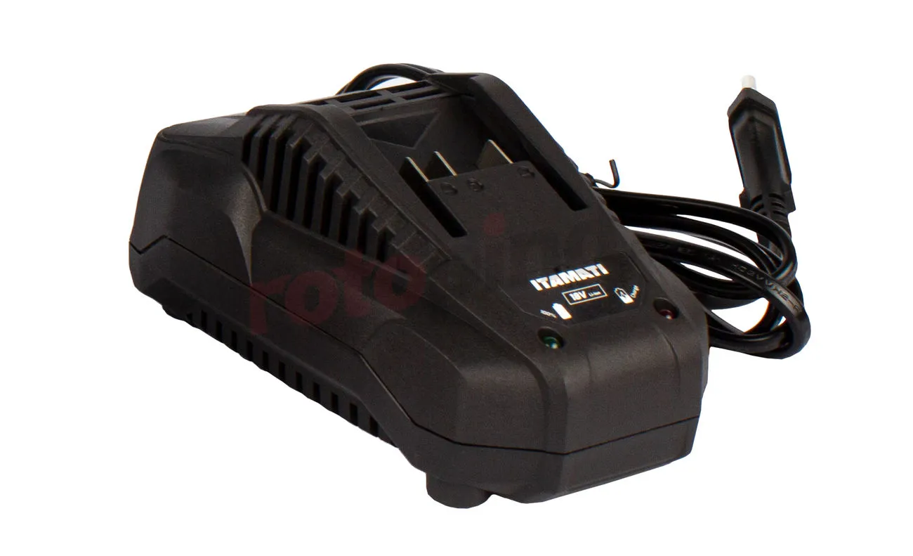 Le chargeur IAM1824 ITAMATI est destiné aux batteries de la gamme de produits IATMATI 18V. Il collabore avec les batteries avec des cellules lithium-ion de 2,0 et 4,0 Ah. La durée de charge maximale est d’environ une heure pour une petite batterie de 2,0 Ah et d’environ deux heures pour une batterie de 4,0 Ah. Le boîtier de l’électronique présente un certain nombre d’espaces de rayonnement qui facilitent la dissipation de chaleur lors d’un fonctionnement intensif de l’appareil. La fixation coulissante des batteries dans le chargeur est facile à utiliser et garantit une connexion fiable, tandis qu’une base large avec pieds offre une position sûre et stable. Deux voyants marqués par des icônes claires indiquent le mode de fonctionnement de l’appareil. Le voyant vert à gauche s’allume lorsque le chargeur est prêt à être utilisé et lorsque la batterie est complètement chargée. La diode rouge allume la charge et son extinction informe sur le travail fini. Une LED rouge clignotante indique une défaillance de la batterie ou du chargeur. La conception extrêmement légère et maniable permet le stockage et le transport faciles.