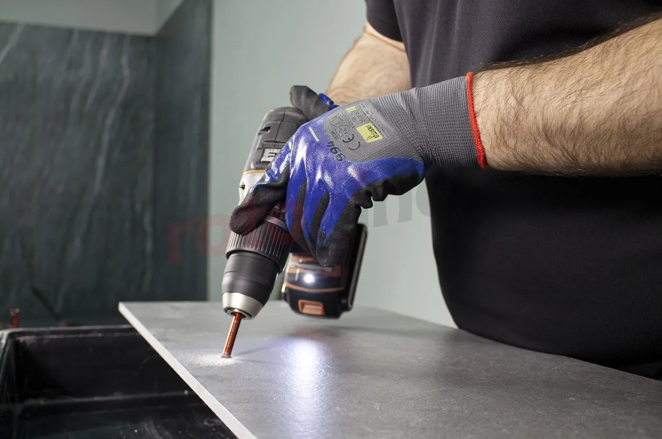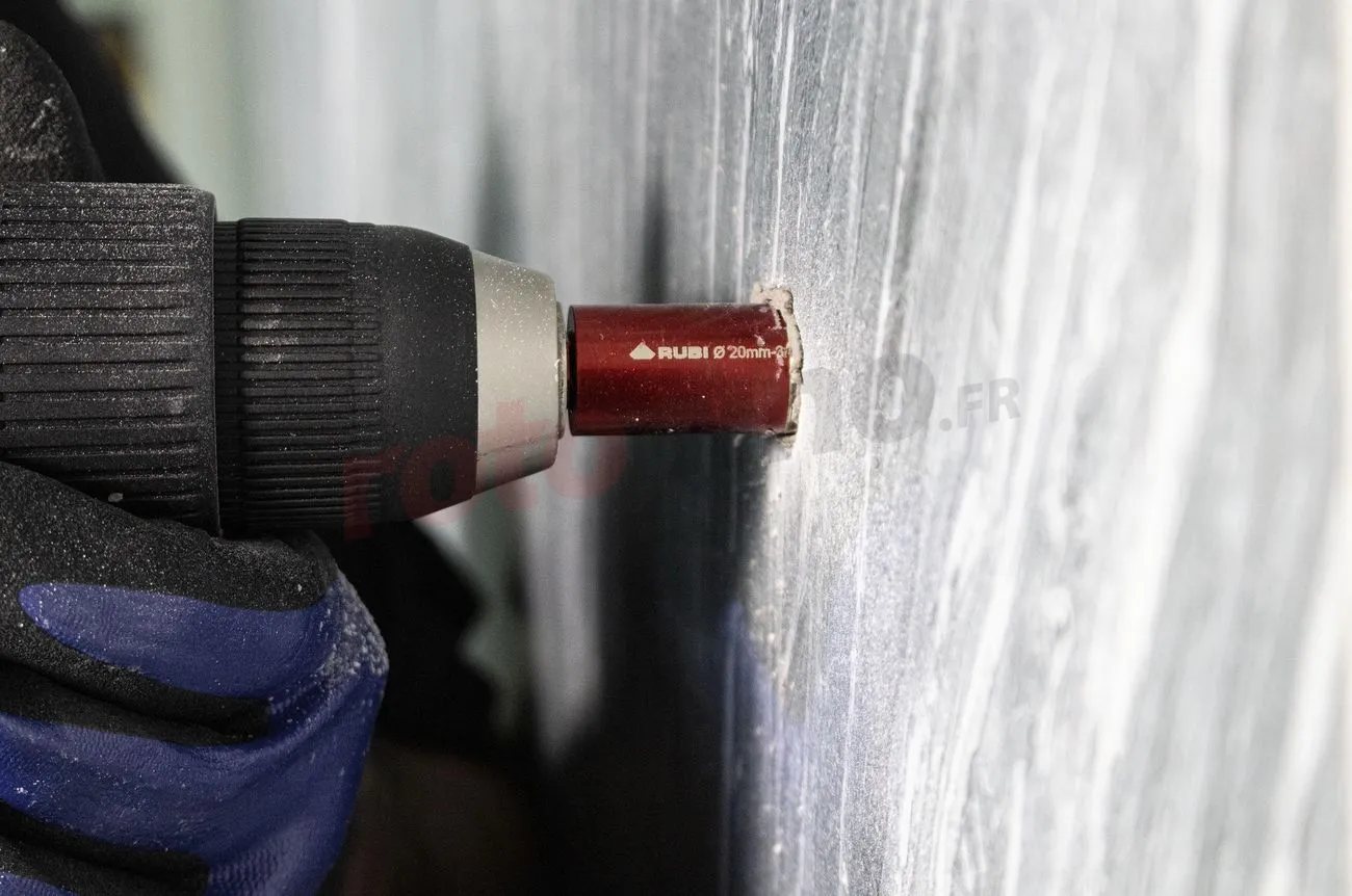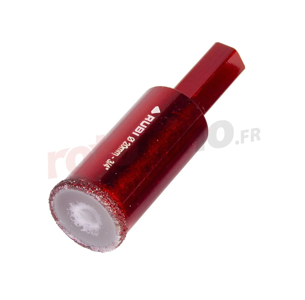 Le foret diamant DRYGRES 4DRILL Rubi 05929 pour percer des trous dans les carreaux de céramique, le grès cérame ainsi que les matériaux de finition tels que la marmum ou le granit. Le foret a une construction durable, car il est développé dans la technologie du soudage sous vide pour une plus grande résistance aux températures élevées et à l’abrasion. À l’intérieur du foret se trouve de la cire qui fond pendant le forage, ce qui assure un meilleur refroidissement et facilite l’élimination des déblais. Le corps du foret est fini avec un mandrin qui maintient la cire à l’intérieur et garantit de meilleures performances et rigidité.
