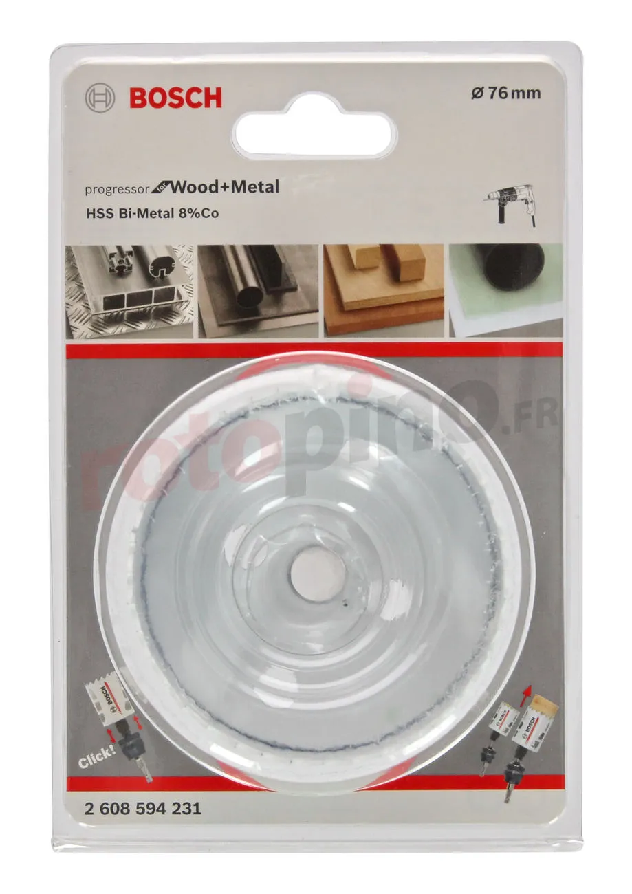 La scie trépan BIM Progressor pour le bois et le métal Bosch 2608594231 est un accessoire de haute qualité avec une durabilité deux fois supérieure à sa version précédente. La scie trépan était faite de matériau bimétal Bosch et d’un mélange d’alliage de cobalt à 8%. Elle fonctionne pour percer des trous dans le bois, les plaques de plâtre, le plastique, le métal, les métaux non ferreux et l’acier inoxydable.